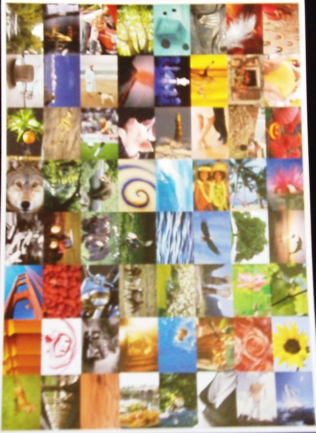 In the next step Dr. Albaugh laid out about 40 image cards on the ground. The images are on 8 x 11 card stock, so they took up a lot of room. Each card had a different picture. Some pictures were of nature, some were action shots, some were people. There were animals, buildings, landscapes and more. There was no rhyme or reason to the pictures. My job was to pick 4 of the pictures that represented the adjectives I used to describe my ideal competing state and the motto I created.